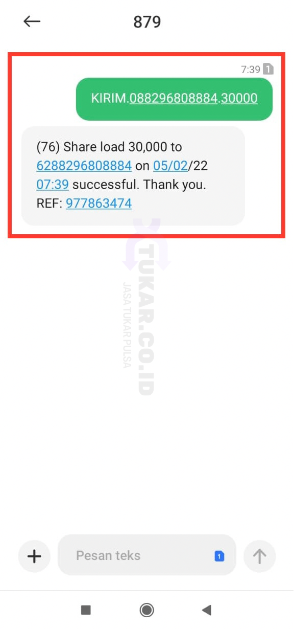 Silahkan transfer pulsa ke Nomor SMS Center kami dengan nominal yang sesuai!