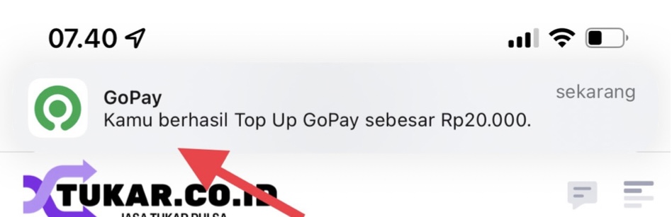 Konfirmasi berhasil saldo GOPAY akan dikirim secara otomatis.