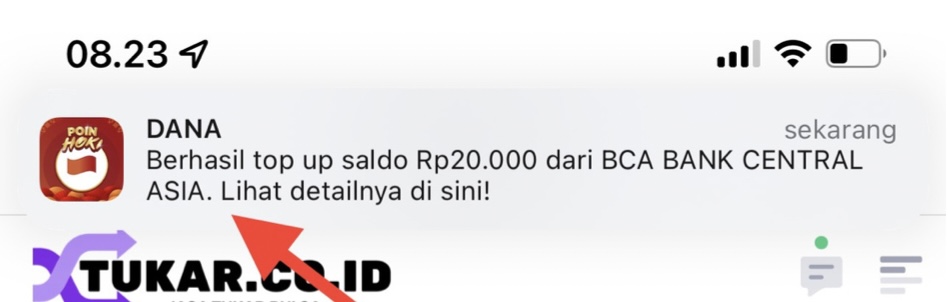 Saldo DANA sudah masuk. Ada notifikasi dibagian atas