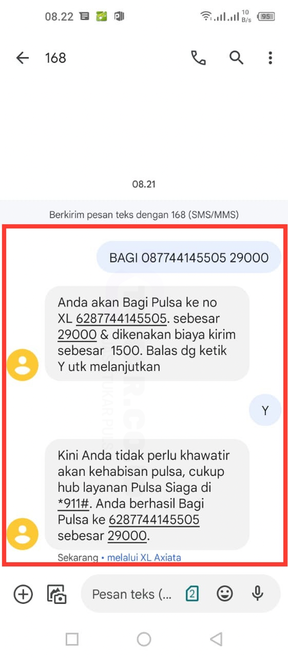 Pulsa sebesar 29000 berhasil dikirim. Langkah selanjutnya konfirmasi pulsa transfer anda dengan cara dibawah